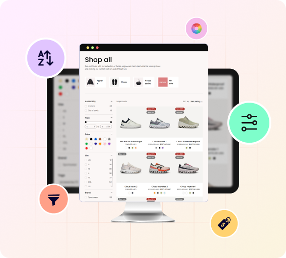 Yes. Smind integrates seamlessly with Shopify’s native filtering and sorting tools. You can display advanced sidebar filters or easy-access sorting dropdowns to help customers narrow down their choices instantly.