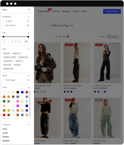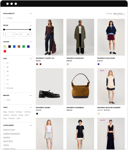Smind provides flexible filter layout options to easily group products by category, season, or best-sellers, giving you full control over how your inventory is presented to maximize engagement.