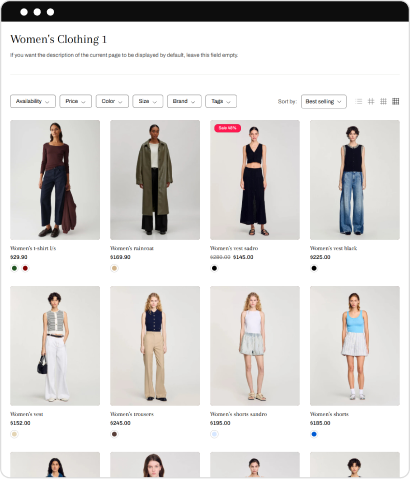 Your collection page is often the first place a customer looks for specific products. A well-organized, visually appealing layout helps shoppers find exactly what they want quickly.
