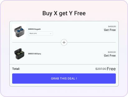 Offers a free item or discount when buying multiples. This encourages customers to buy more than they planned to get the reward, boosting your sales.