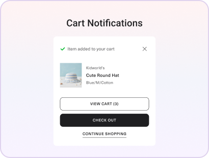 Shows a clear message when an item is added to the cart. This confirms the action instantly so customers can keep shopping without any confusion.