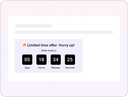 Displays a ticking clock for limited-time sales. This creates urgency and pushes customers to buy quickly before the deal runs out and they miss it.