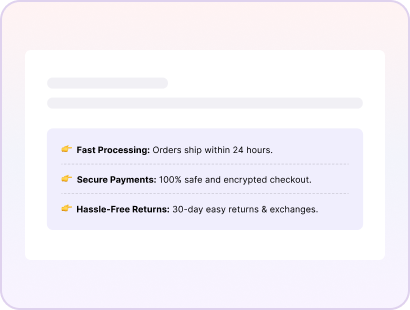 Makes your buy button stand out with custom colors and styles. A clear, attractive button grabs attention and helps customers finish their purchase much faster.