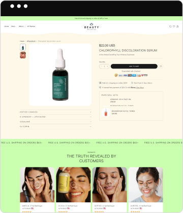 Product Blocks give you the flexibility to customize your layout without being restricted by your theme's default design. They allow you to modularly add specific features such as collapsible tabs, size charts, trust badges, or countdown timers, exactly where you need them. This helps highlight key selling points and creates a richer shopping experience that drives sales.