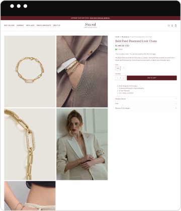 A Shopify Product Page is a section of your store where specific items are detailed and sold. It is the most critical point in the customer journey, displaying essential information like high-quality images, pricing, descriptions, and the "Add to Cart" button. Its primary goal is to convert a browsing visitor into a paying customer.