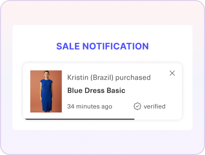 Shows tiny alerts that other people are buying products. This builds trust and encourages new visitors to buy because they see your store is currently popular.